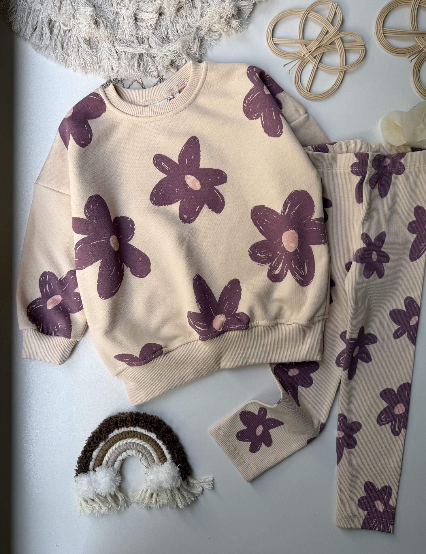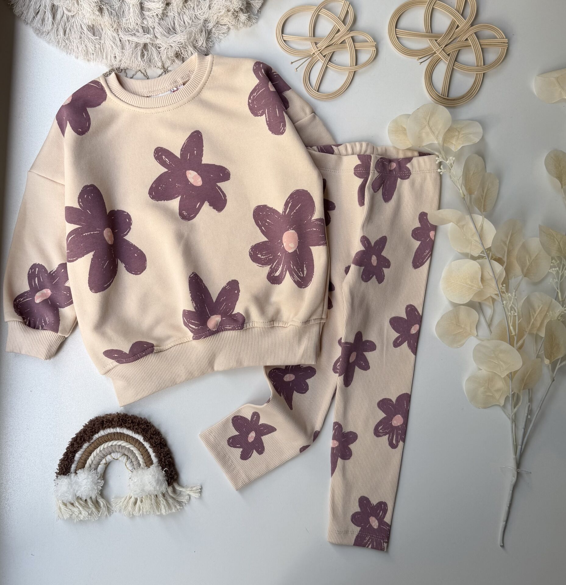 Çiçek detaylı taytlı takım