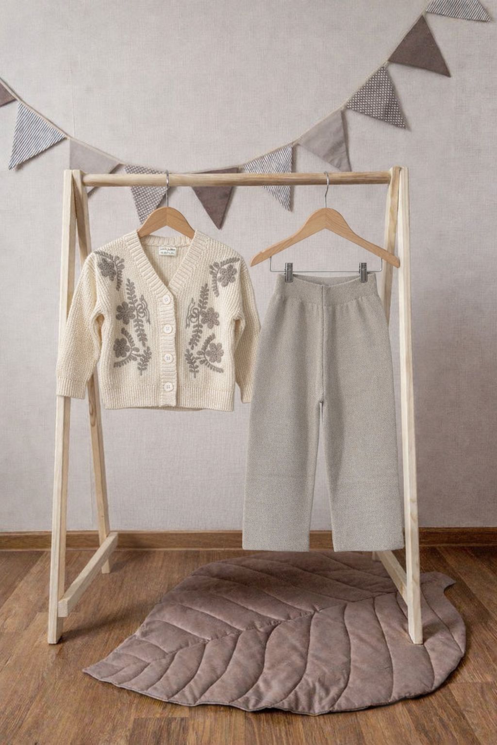 Çiçek detaylı Triko takım