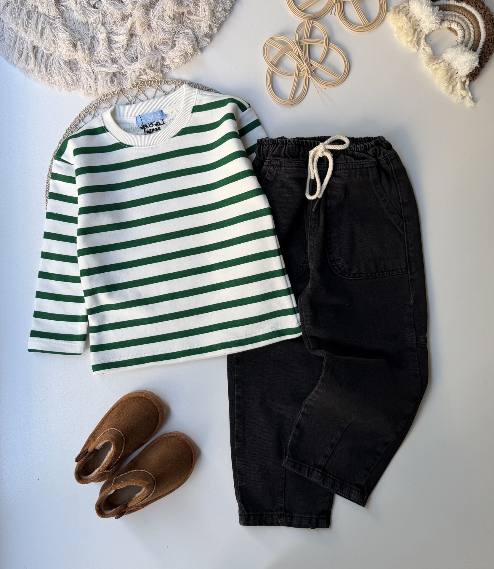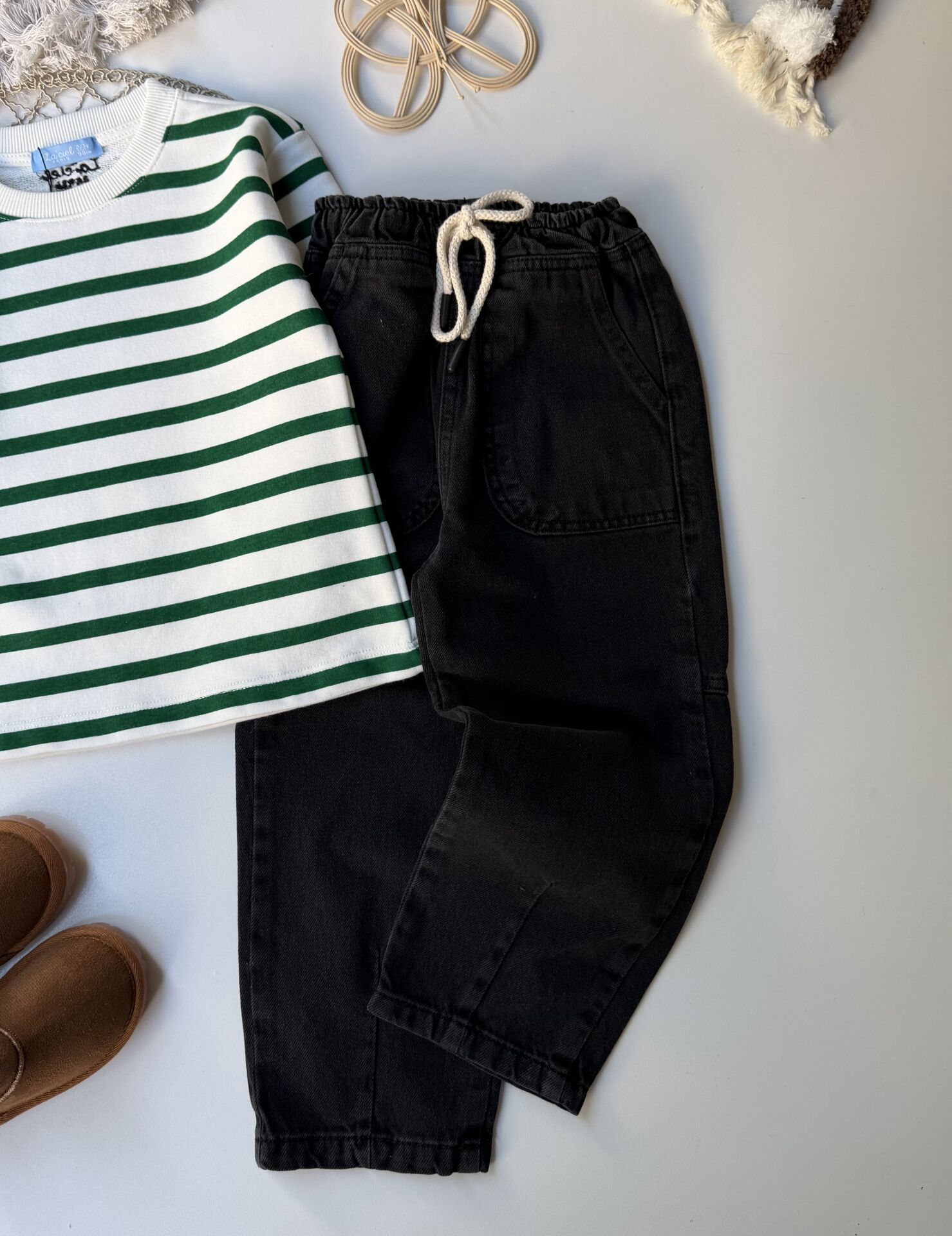Çizgili tişört Gabardin pantolon takım