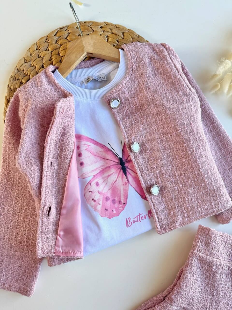 Dokuma pembe 3lü takım