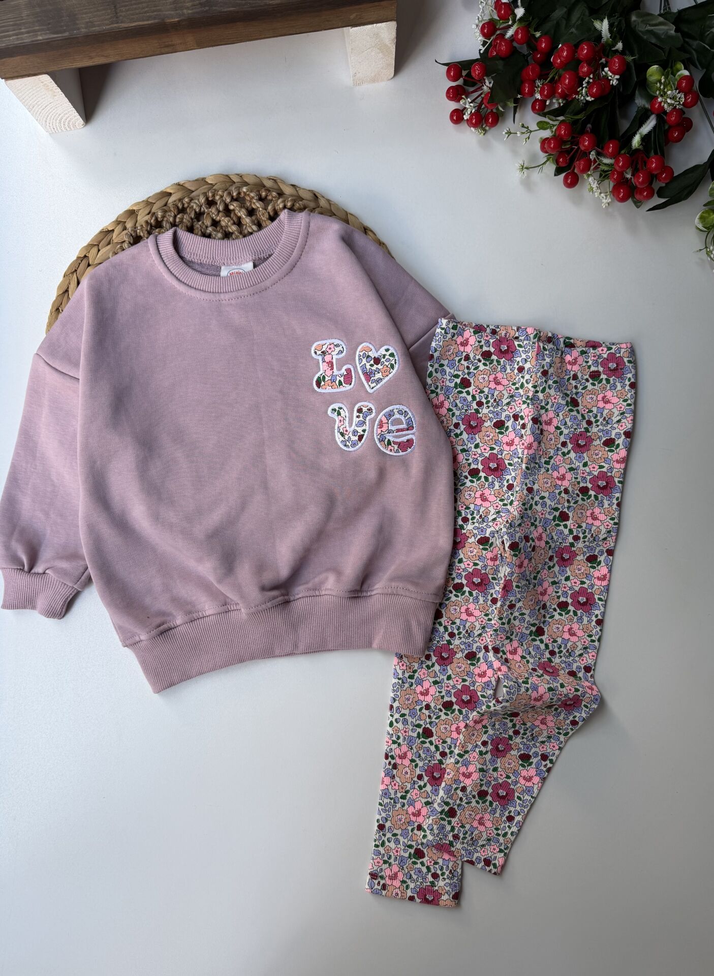 Love çiçekli takım