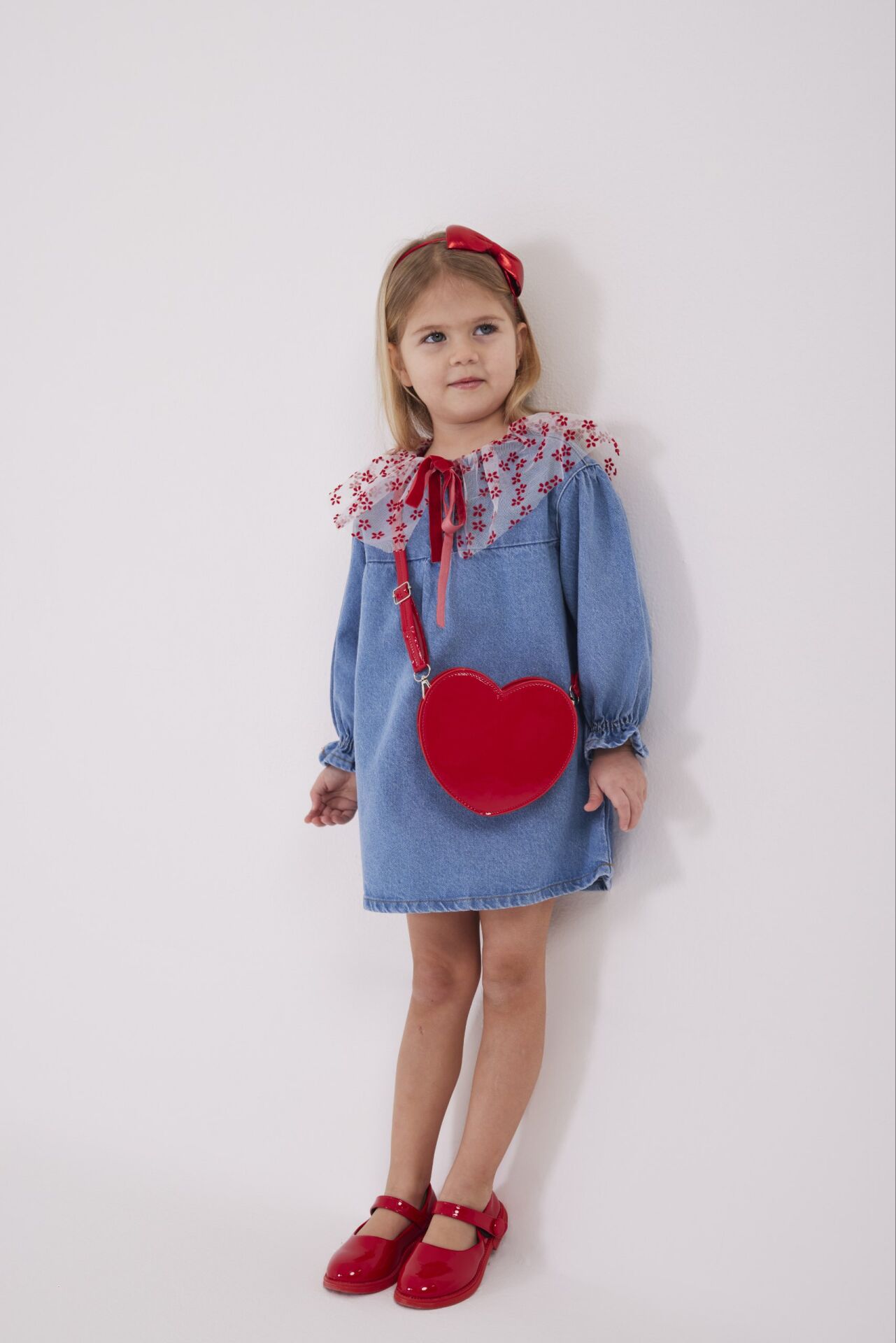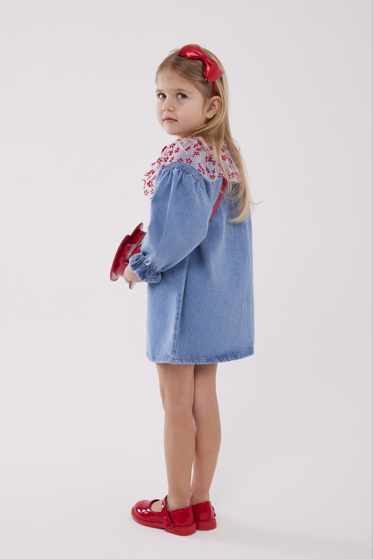 Yaka detaylı denim elbise